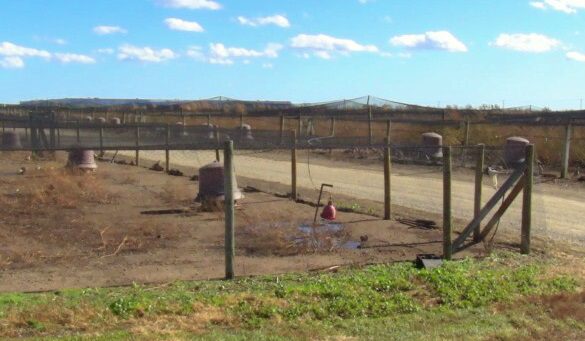 Ground cover is needed in the pens to provide shelter and distract the birds from pecking at each other. Natural cover is best. The best natural cover is Lambsquarter. It has leaves all the way down the stem and doesn’t tend to grow through the netting. It lasts throughout the season. Ragweed is fine in the spring, but it gets out of control later in the season and is best avoided. Corn and Milo can be planted as cover and make excellent cover for part of the season.