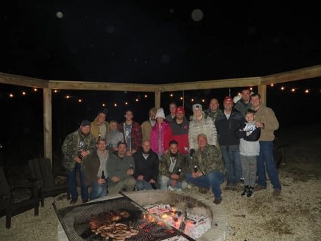 Under normal circumstances (warmer weather), this meal would be eaten family style, outside, but for this meal, when the cooking was done, all 20 people ate family style in the house. It was just too cold, as the fire began to die down. Bill and Dori said there was enough food for 100 people and the meal and company made the whole experience an unforgettable night.